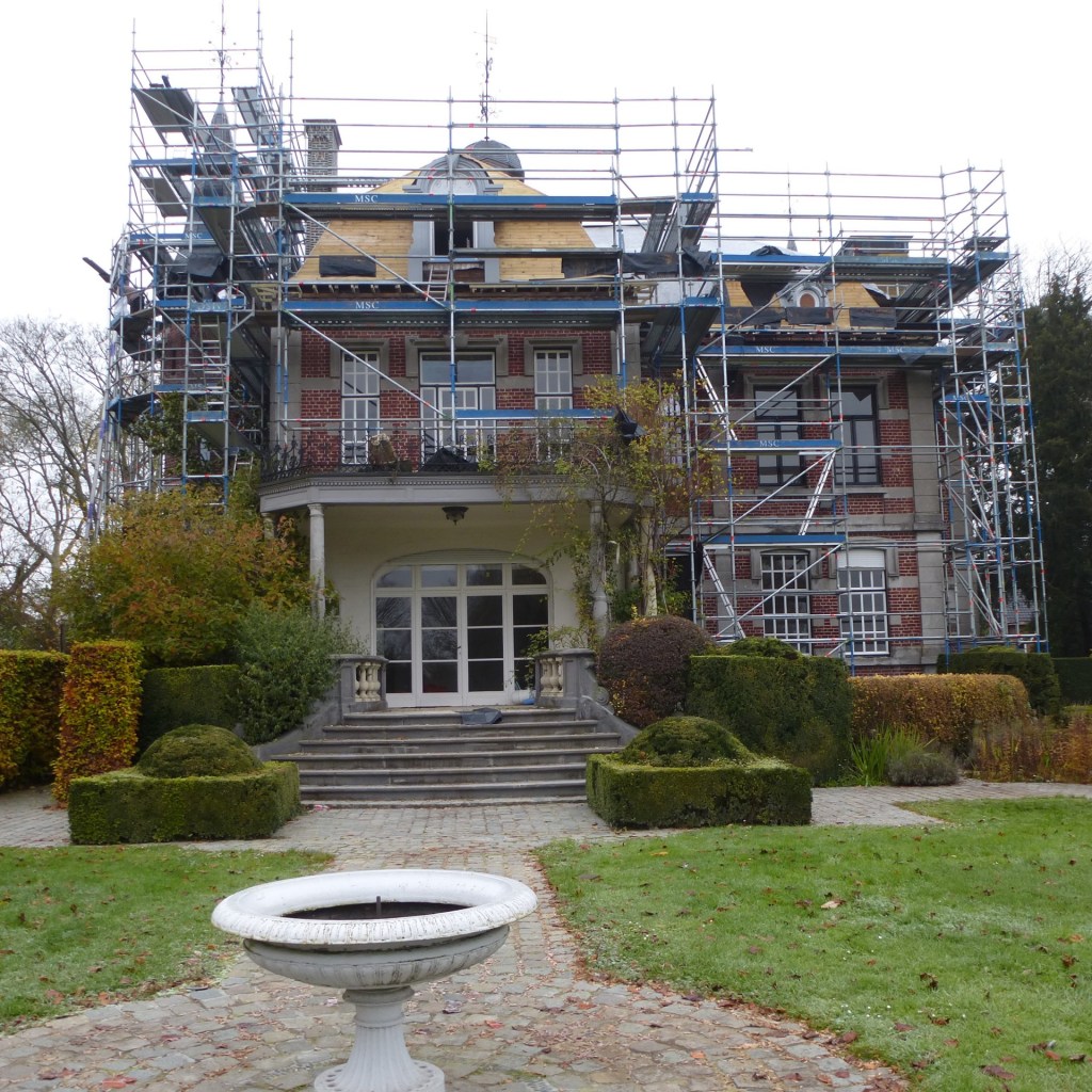 Het grote nadeel van zandstralen is het opruwen van de toplaag. Dit kasteel staat omgeven door prachtige grote bomen en zou er snel last van ondervinden. Een behandeling met hydrofuge zou dit hier maar beperkt hebben verholpen.